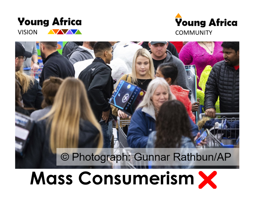 Consumerism also places short-term profits above long-term sustainability. Because there are so many people in Africa who currently own very little, and there is such a HUGE new market of 200 million unemployed youth, who can learn the skills to become productive contributors to the economy, this collective buying power can strategically shape all manufacturing globally, to become more focused on doing the right thing: sustainable sourcing, manufacturing and distribution – along the value chain!