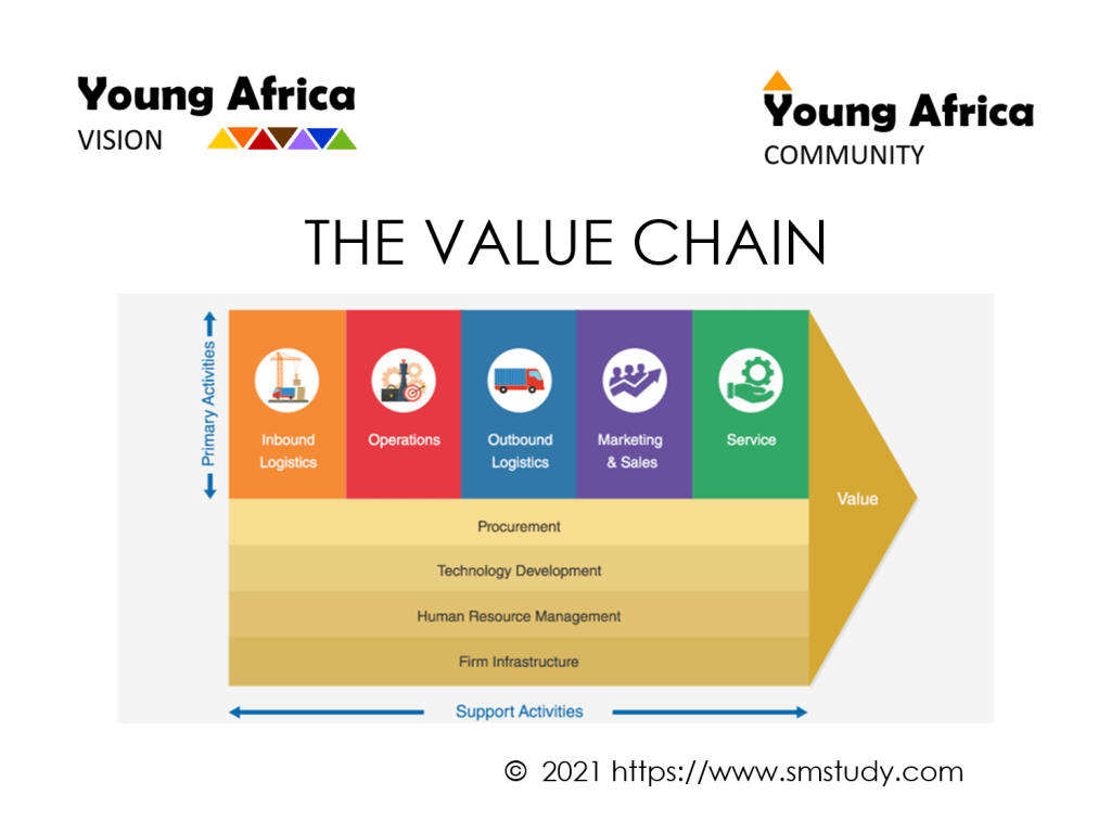 Another critical way of improving socio-economic impact is by making a commitment to develop enterprises and infrastructure along the Value Chain. The image below offers a visual explanation of how a Value Chain works, in general: