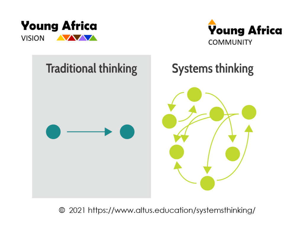 This emphasis on “Systems Thinking” was taught to the Founder of the Young Africa VISION, Reinhild Niebuhr, by a remarkable African leader, Dr Thokozile Chitepo. Dr Chitepo currently serves as the Permanent Secretary of the Ministry of Youth, Sports, Art and Recreation in Zimbabwe, Dr Thokozile Chitepo.